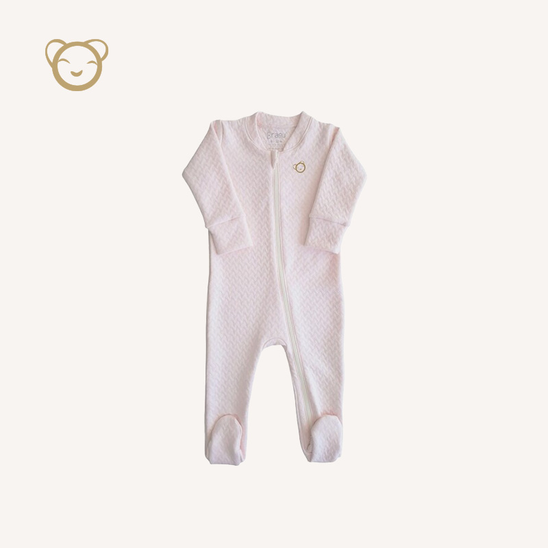 Enterizo para bebé confeccionado en algodón jacquard, suave y delicado con la piel. Su textura sutil aporta abrigo ligero y confort, ideal para climas frescos. Cuenta con cierre frontal que facilita el cambio y pies integrados que mantienen al bebé abrigado y cómodo durante todo el día o la noche. Beneficios de las prendas: