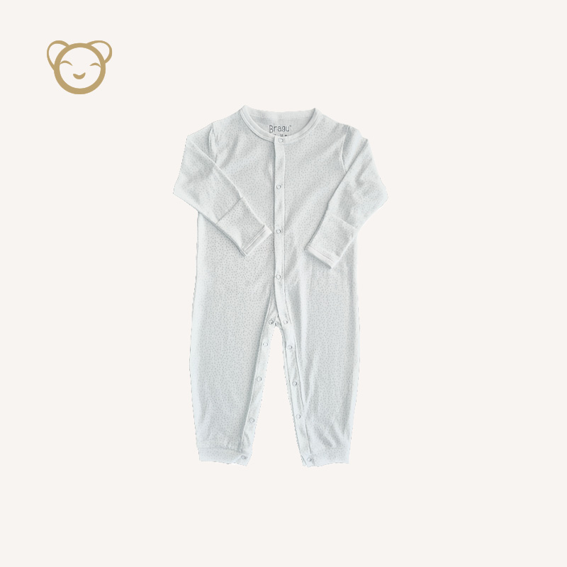 Enterizo para bebé confeccionado en algodón jacquard, suave y delicado con la piel. Su textura sutil aporta abrigo ligero y confort, ideal para climas frescos. Cuenta con cierre frontal que facilita el cambio y pies integrados que mantienen al bebé abrigado y cómodo durante todo el día o la noche. Beneficios de las prendas: